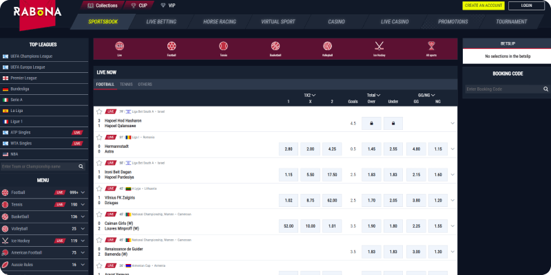 You will find betting opportunities on hundreds of different markets when gambling at Rabona. They have multiple different leagues and events available for football, baseball, tennis, motor sports, combat sports, American football, and many many more. Whether you like to focus on the most popular events that you watch, or you like finding the obscure sporting events that present you with great winning opportunities, you will find them all here. They boast more than 30,000 events each month, which definitely means they have something for everyone.